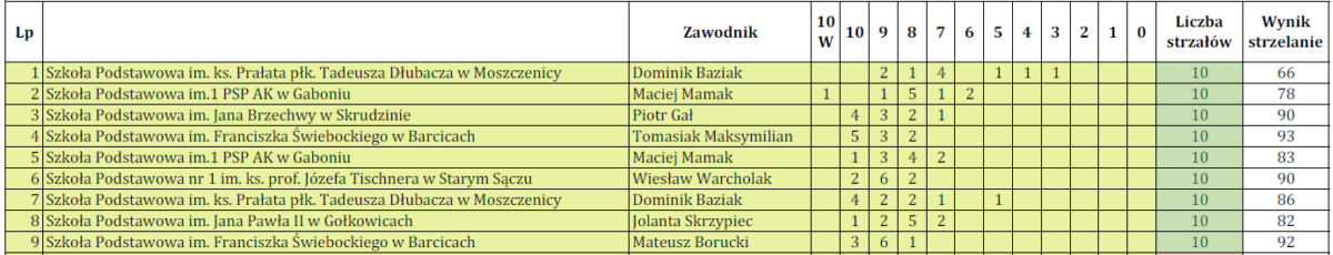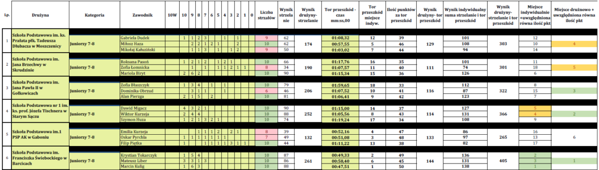 Wyniki przedstawiają się następująco: