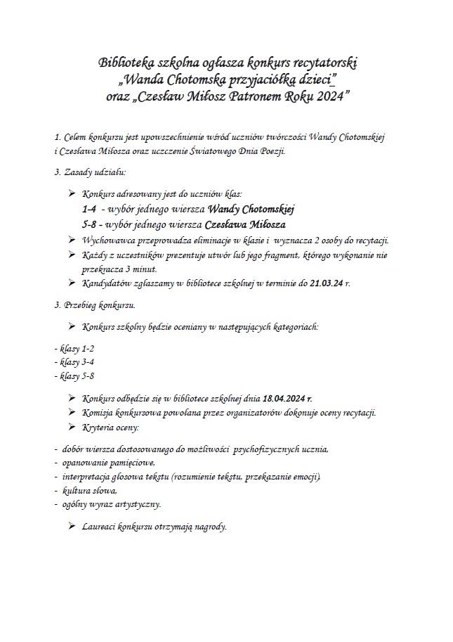 Dnia 01.03.2024 r. w Szkole Podstawowej nr 2 im. Juliusza Słowackiego