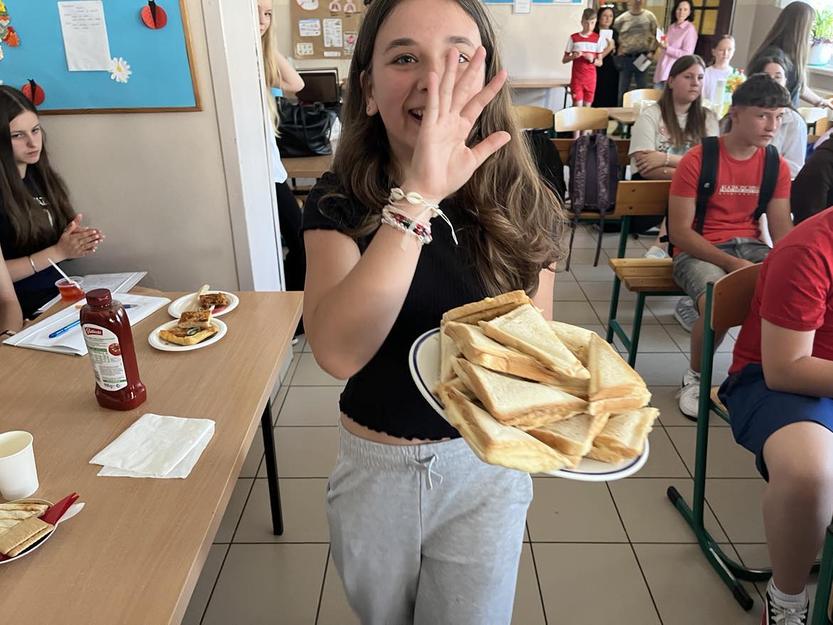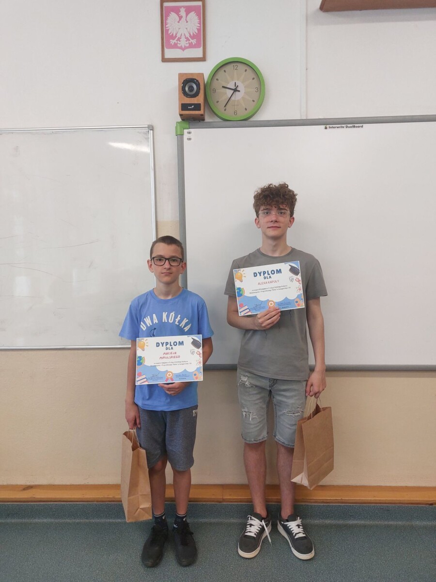 Przy okazji podsumowaliśmy konkursy językowe i wręczyliśmy dyplomy i nagrody. W konkursie czytelniczym Filotimo najwięcej punktów zdobyła Maja Tabor z klasy VI a, a tytuł Złotego Kangura wywalczyła Weronika Hoja z klasy VI b.