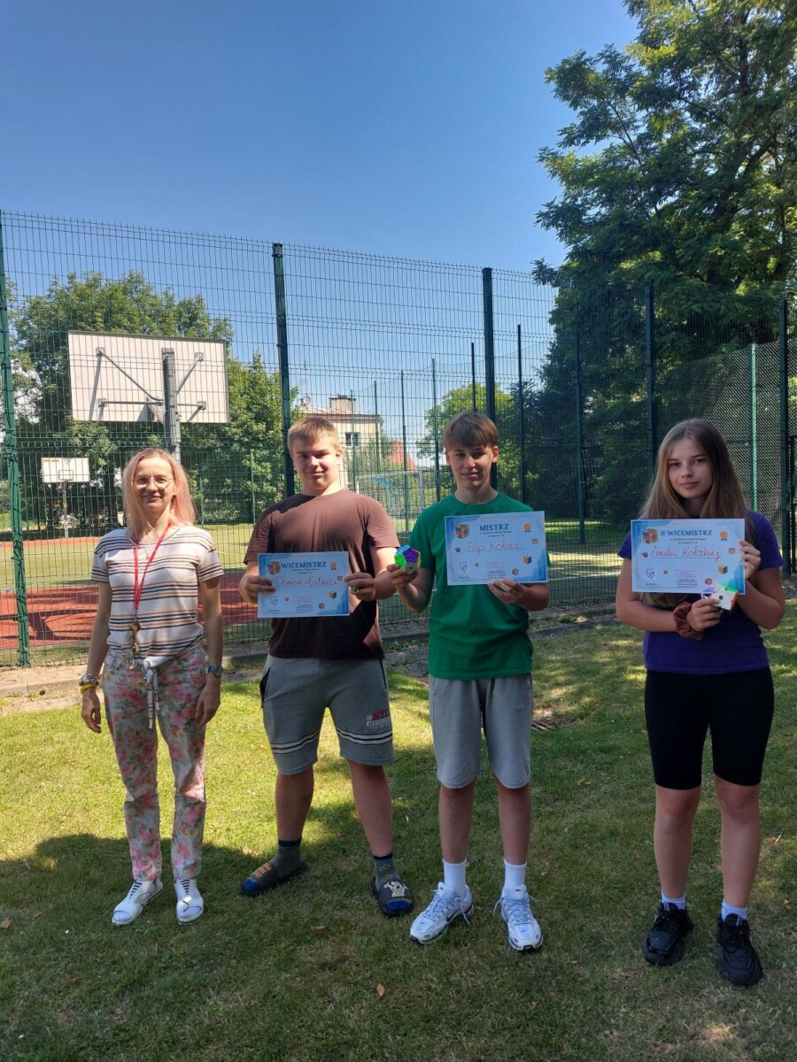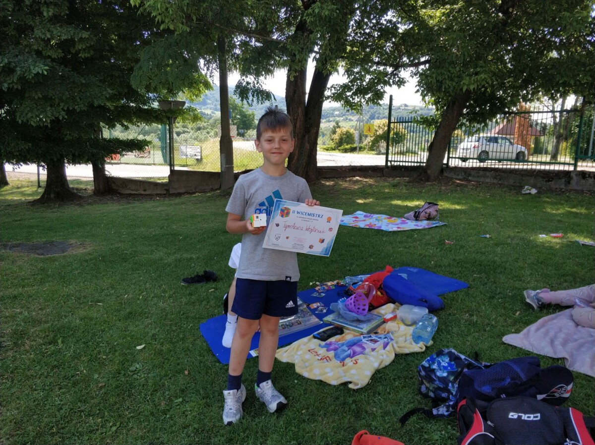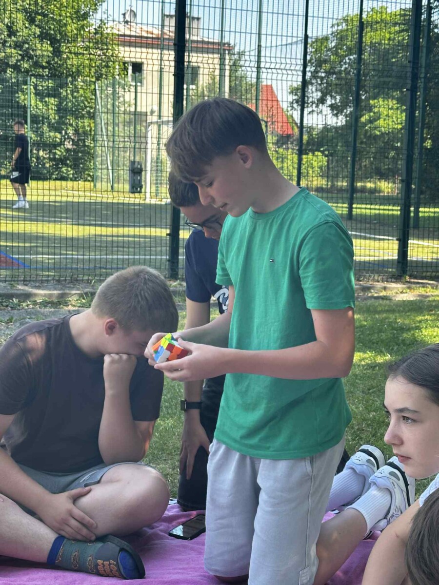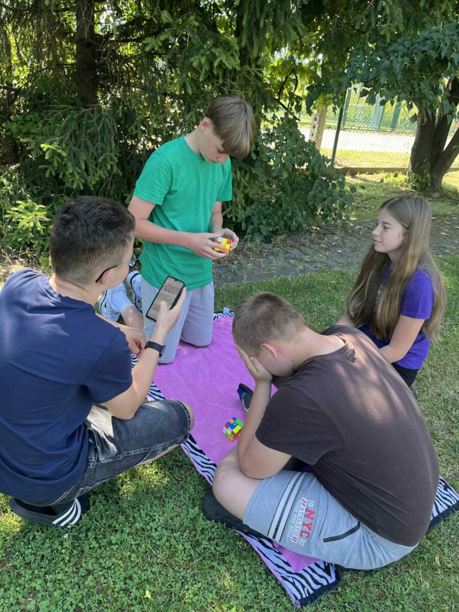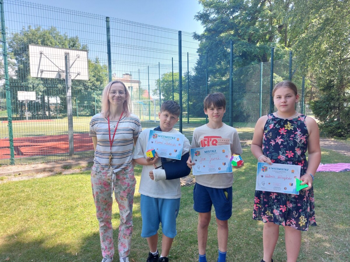 "Ostatni dzień roku szkolnego uczciliśmy konkursem w układaniu kostki Rubika. Sprzyjała temu aura i wakacyjne humory uczestników. Oto wyniki: