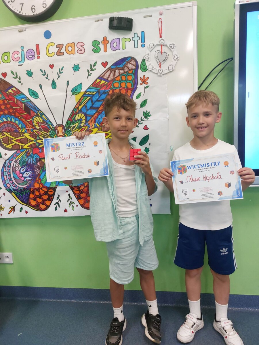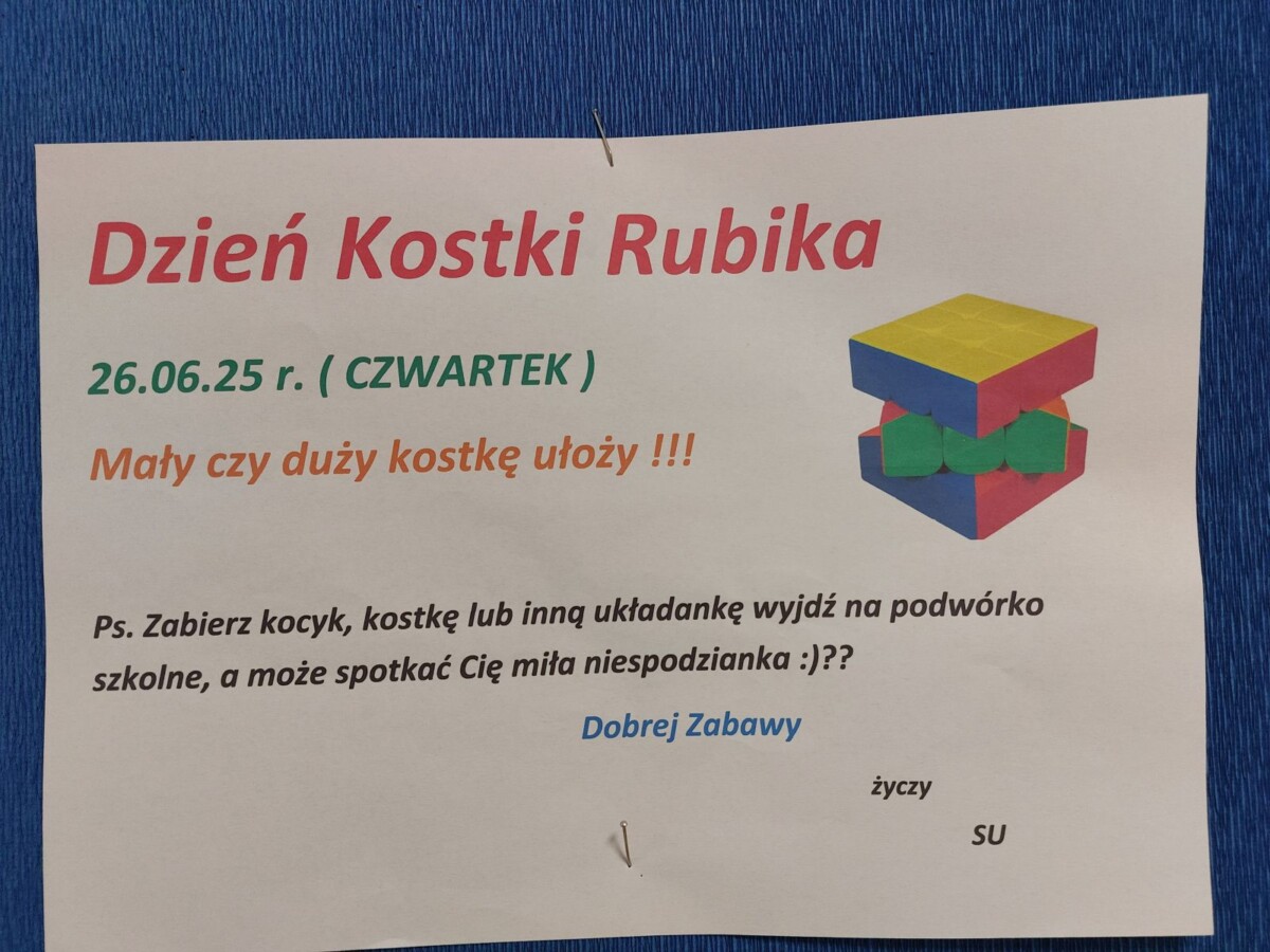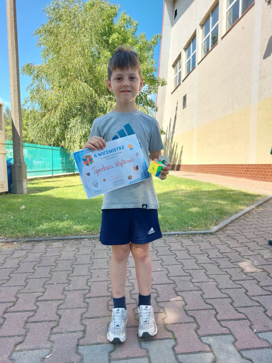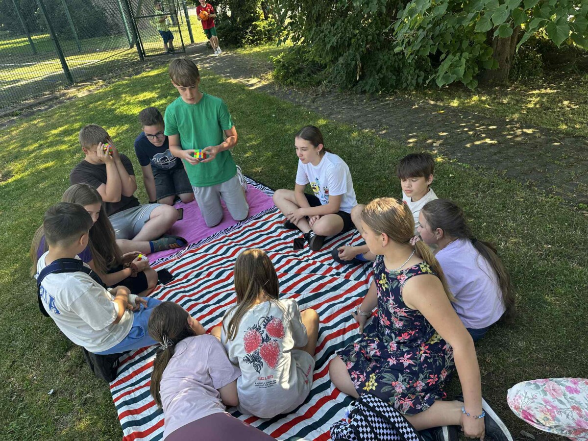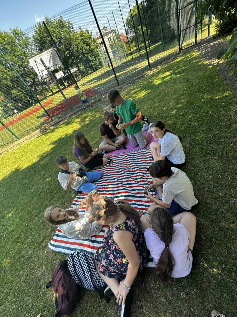 "Ostatni dzień roku szkolnego uczciliśmy konkursem w układaniu kostki Rubika. Sprzyjała temu aura i wakacyjne humory uczestników. Oto wyniki: