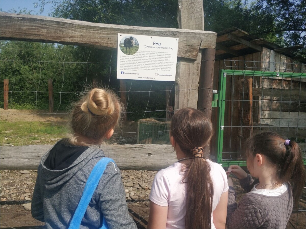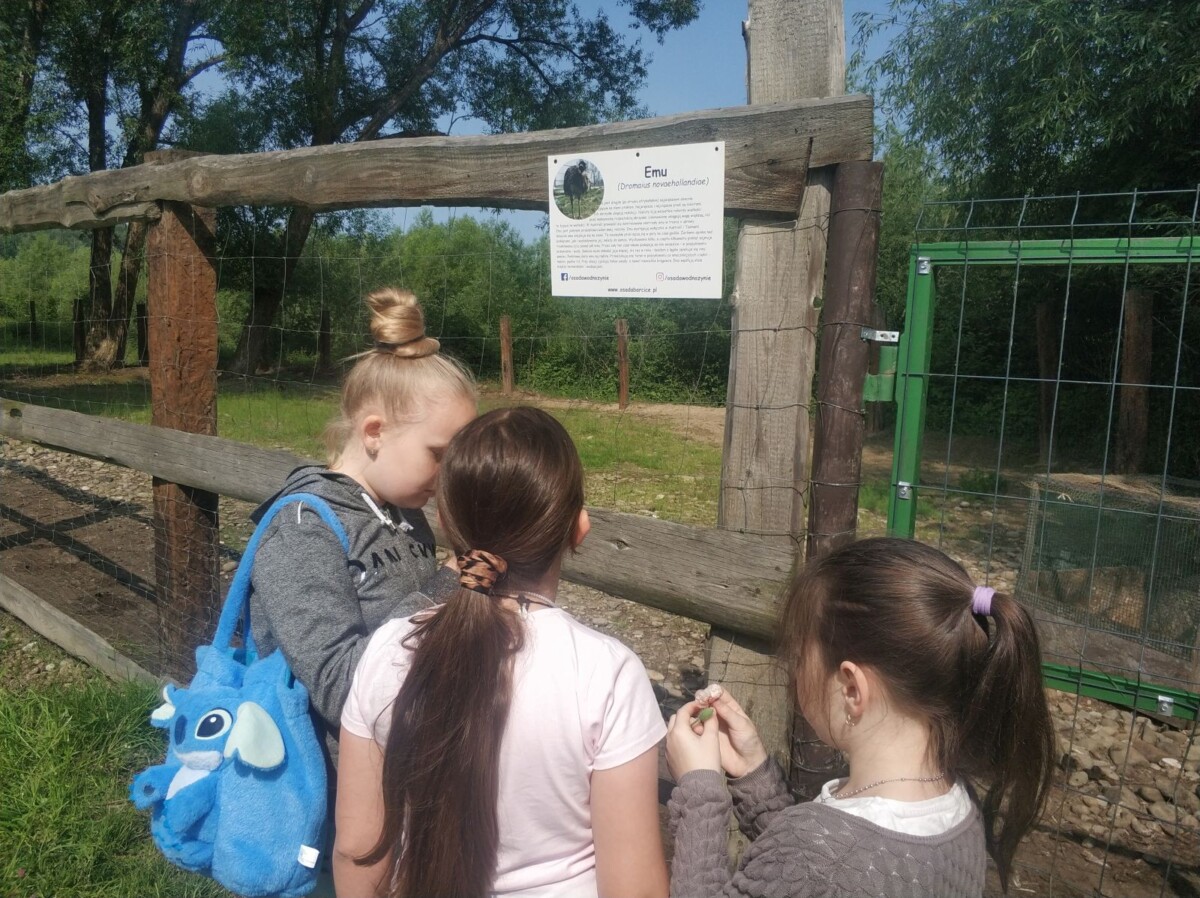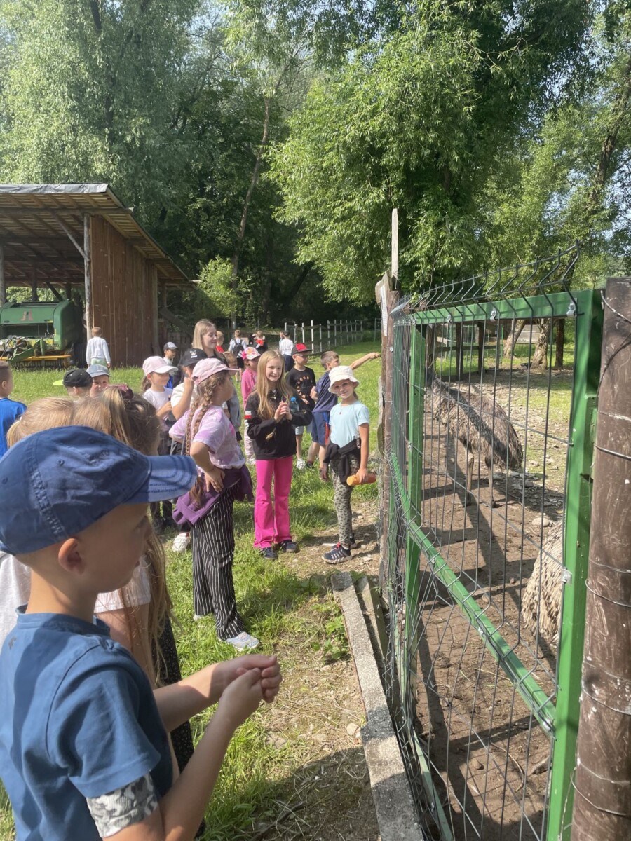 10 czerwca  drugoklasiści odwiedzili mini zoo w Barcicach. Podczas pobytu dzieci miały okazję z bliska obejrzeć zwierzęta tj.: alpaki, lamy, daniele, osły, strusie, króliki, kury, indyki, pawie i inne. Przyglądanie się zachowaniu zwierząt budziło wiele emocji. Dużym przeżyciem było ich głaskanie i karmienie. Po zwiedzaniu mini zoo uczniowie udali się na plac zabaw, gdzie mogli aktywnie spędzić czas. Wycieczka okazała się ciekawą lekcją przyrody, którą dzieci z pewnością będą wspominać z uśmiechem na twarzy.
